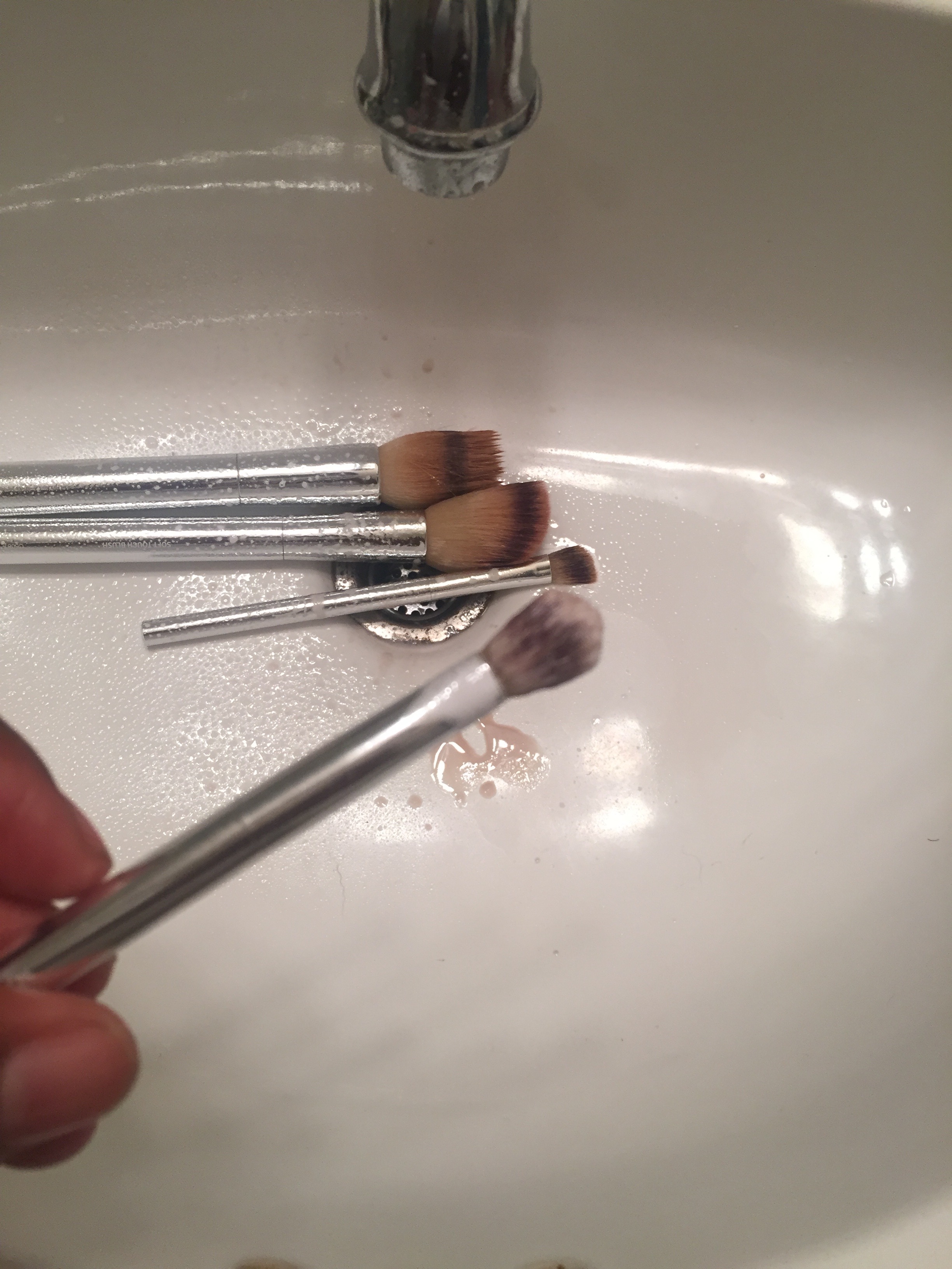 - You have to spray a lot to thoroughly clean your brushes.